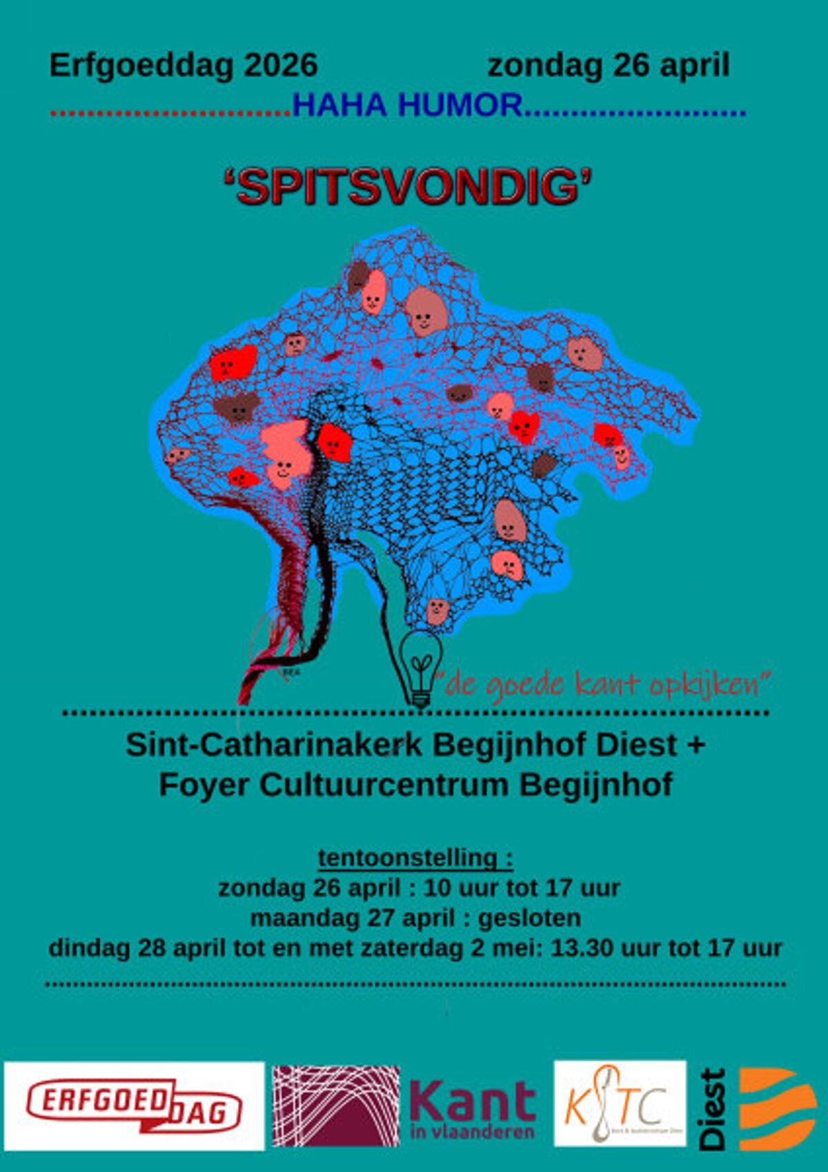 As is customary each year, and in the context of Heritage Day 2026, Kant in Vlaanderen has chosen the theme ‘SPITSVONDIG’ (sharp, clever, witty) as the title for its annual exhibition. To this end, Kant in Vlaanderen is also looking to you and challenging you and other artists to create something within the framework of this theme.
