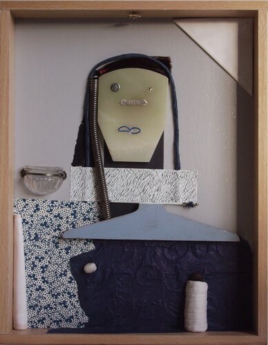 ........Haar geest wordt gedragen door een alertheid en nadenkendheid ook uitgedrukt in de titels. Je ziet iets, je ziet véél, zeker bij samengestelde werkjes. Er staat meer als er staat De kijker krijgt huiswerk mee. Wat wel en dadelijk opvalt: de werken zijn vaak voorzien van een speels element, maar dat wordt dadelijk in balans gehouden door een dosis geheim / raadsels en met soms zelfs lichtjes rauwe ondertonen. Ze zijn of soms vertederend, soms herkenbaar grappig, soms licht droefgeestig en/of soms alles tegelijk.……. S.H.S)
