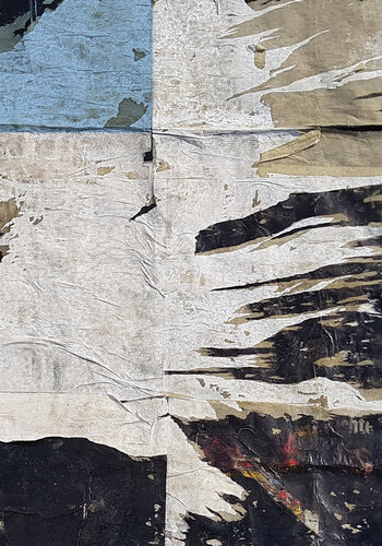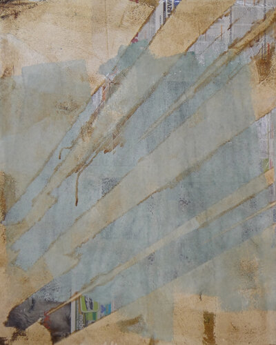 Ik ben gefascineerd door de texturen en vormen die de natuur in de bewoonde wereld achterlaat (bemoste gevels, schimmelplekken, afgeblakerde verf, gescheurde straatposters,...) Ik ga zeer intuïtief op zoek naar de texturen die je kan bekomen als je verf, inkt, tape, bister en papier samenbrengt.