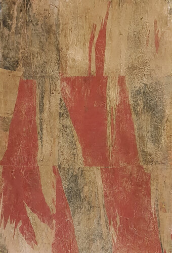De schilderijen worden niet geschilderd, maar ze onstaan. Dit resulteert in aardse texturen en toevallige vormen die je ook kan terugvinden waar de natuur de bewoonde wereld kruist.