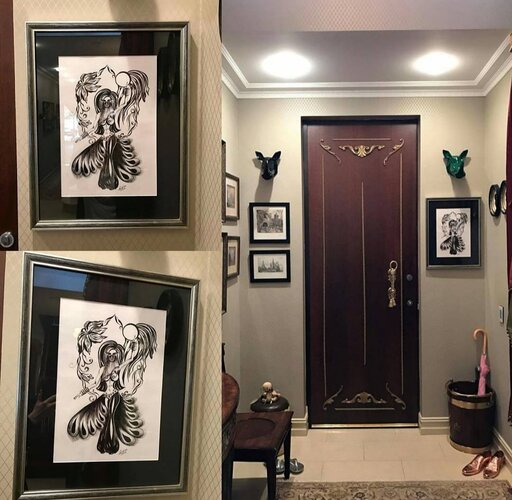 De cirkel die zij in haar hand houdt, kan worden geïnterpreteerd als de maan, een symbool van vrouwelijke kracht, cyclus en mystiek. De omliggende lijnen en vormen doen denken aan planten en vlammen, die het idee van groei, passie en transformatie versterken.