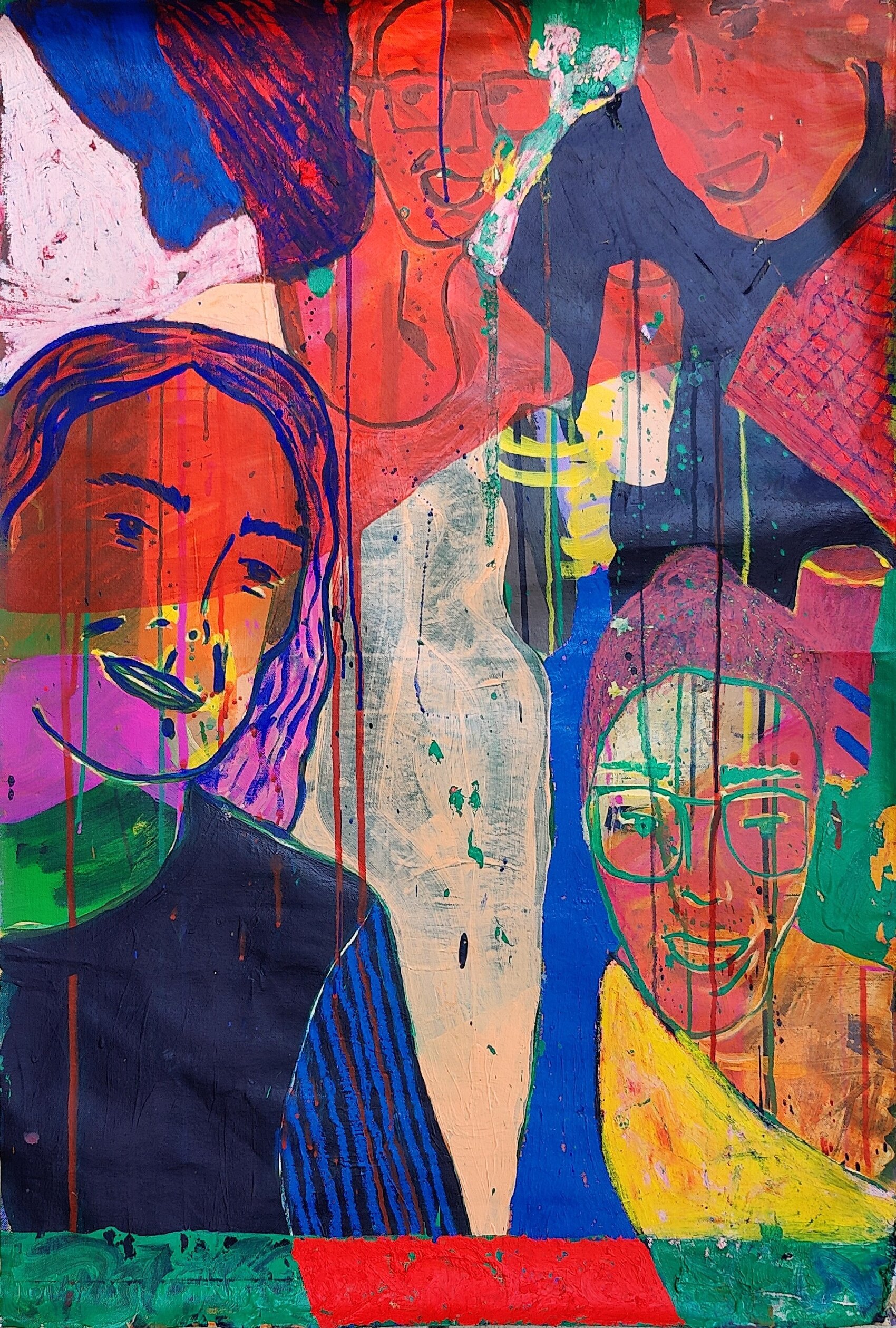 Dit beeld omvat vier figuren. Het beeld straalt een hedendaagse sfeer uit door het gebruik van een selfieperspectief. Het felle kleurgebruik benadrukt de uitbundige stemming die het beeld schept.