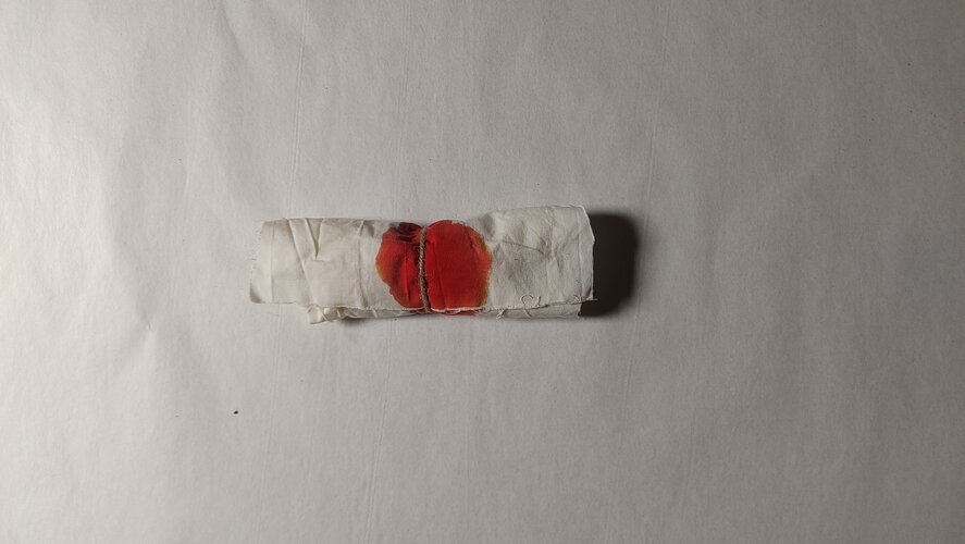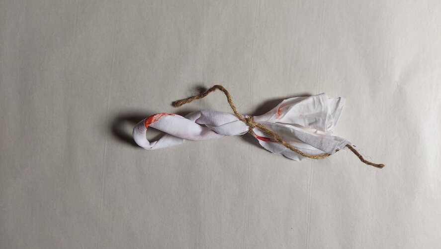 In dit rouwwerk heb ik, na het heengaan van een geliefde, zijn lichaam dat ik niet meer heb gezien, intuïtief via stof en draad in materie omgezet.
