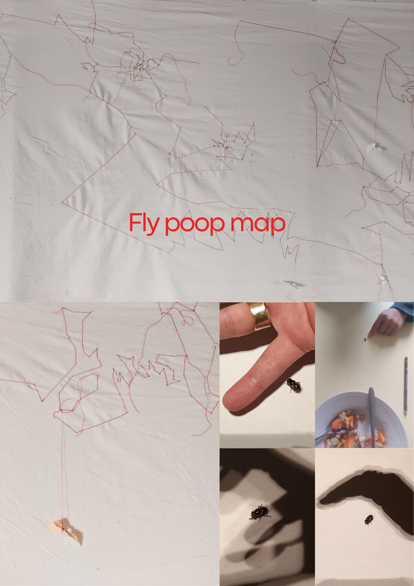 Door de puntjes vliegenpoep met elkaar te verbinden, ontdek ik verborgen vormen van communicatie… of minstens hoe een vlieg zijn eigen stempel op de wereld drukt.