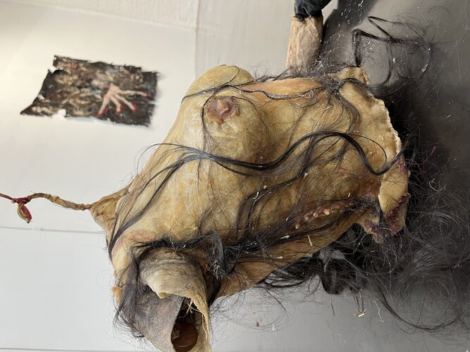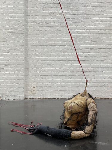 Ware grootte van een buste. Gemaakt uit eco latex opgevult met stro, verworken kapstok en haar.