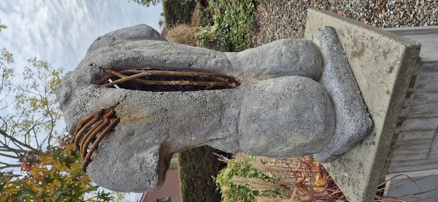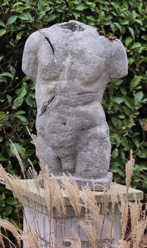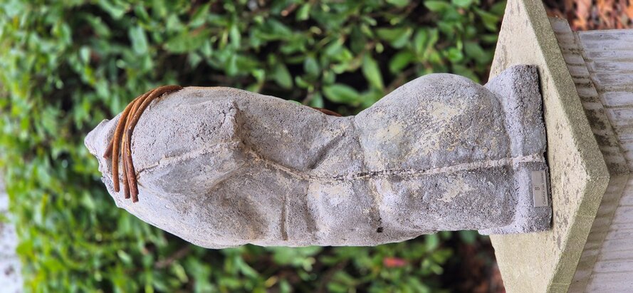 Betonnen sculptuur • Hedendaagse kunst • Figuratieve torso • Ruwe textuur • Verroest metaal