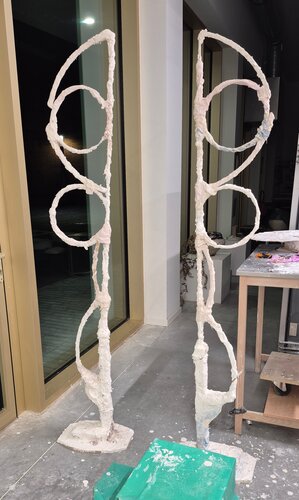 Met mijn intuïtieve benadering onderzoek ik mijn immer wederkerende thema's als kwetsbaarheid, verbinding en vrouwelijke kracht, alsook de cyclus van loslaten en ontstaan, fragiele lagen vol met littekens en toch schuilt er schoonheid in het gekwetste oppervlak.