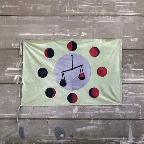 Een weegschaal zoekt naar evenwicht tussen nieuwe en volle maan. Hetzelfde hemellichaam (door velen als vrouwelijk gezien) in twee toestanden: compleet verlicht door de zon, of volledig aan ons zicht onttrokken. Daaromheen beweegt de maan in veranderend licht.