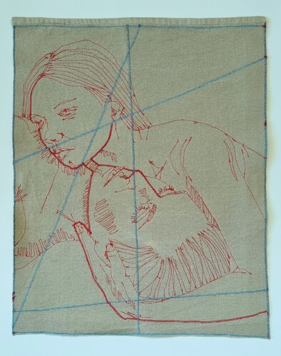 Mijn bedoeling is om het gevoel en de uitstraling van een tekening te benaderen. Pas bij goed kijken merk je dat er niet is getekend, maar wel gestikt. Dit nodigt de toeschouwer uit om langer te kijken en de tederheid in draad te ontdekken.
