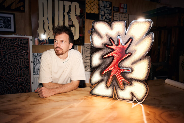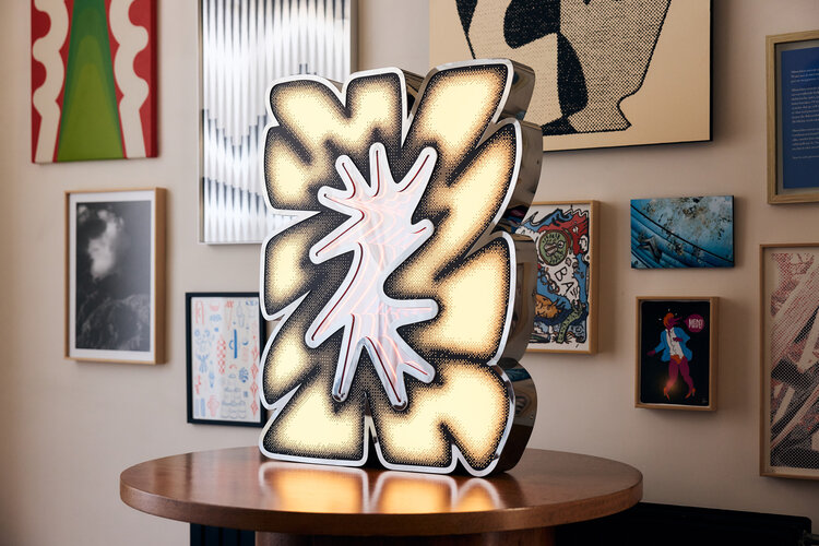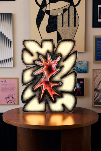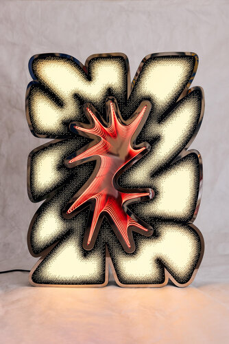 Knalbak is een lichtsculptuur die speelt met intensiteit en reflectie. Gepolierd metaal omhult een zacht pastelgeel binnenlicht met een oneindig diepte-effect. Wanneer het werk uitstaat, verandert de lichtbron in een spiegel. Stil, koel en vol zelfreflectie.