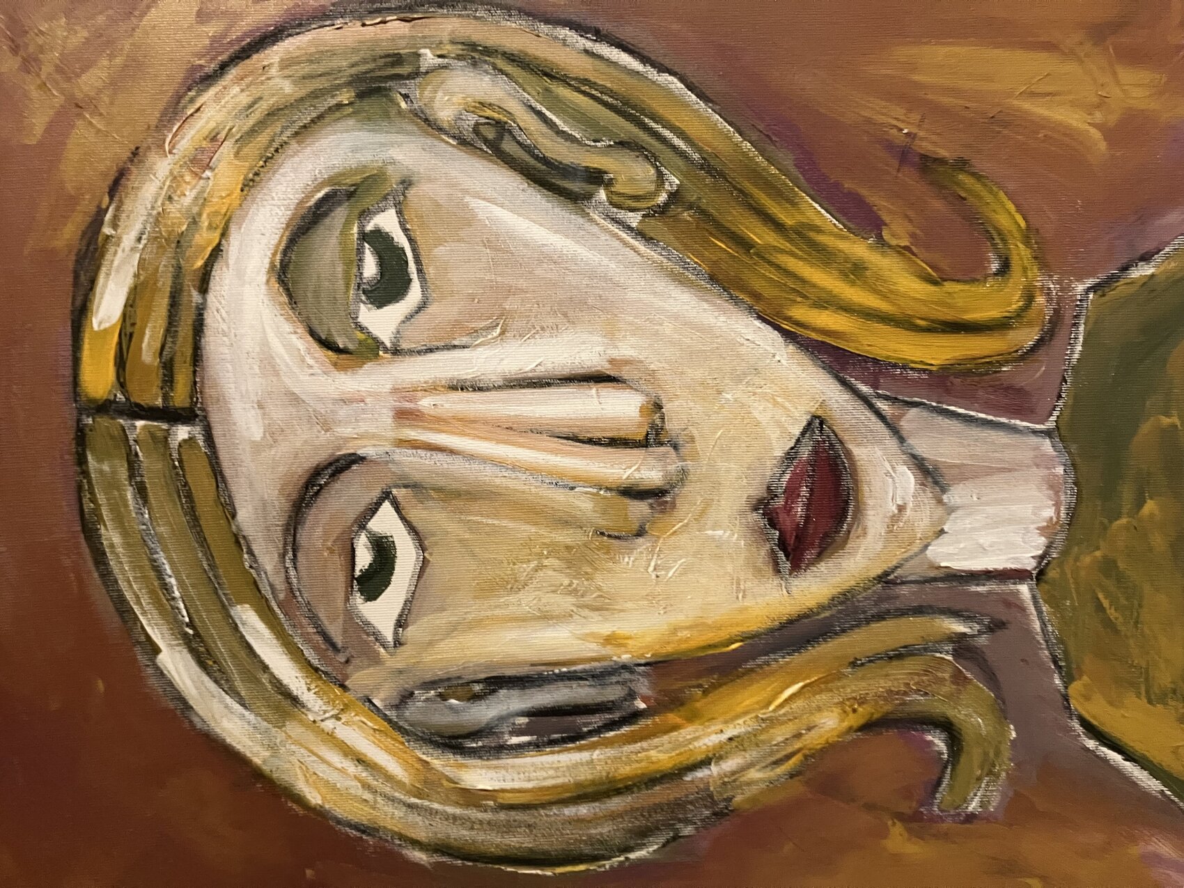 Vrouw geschilderd met acrylverf op canvas