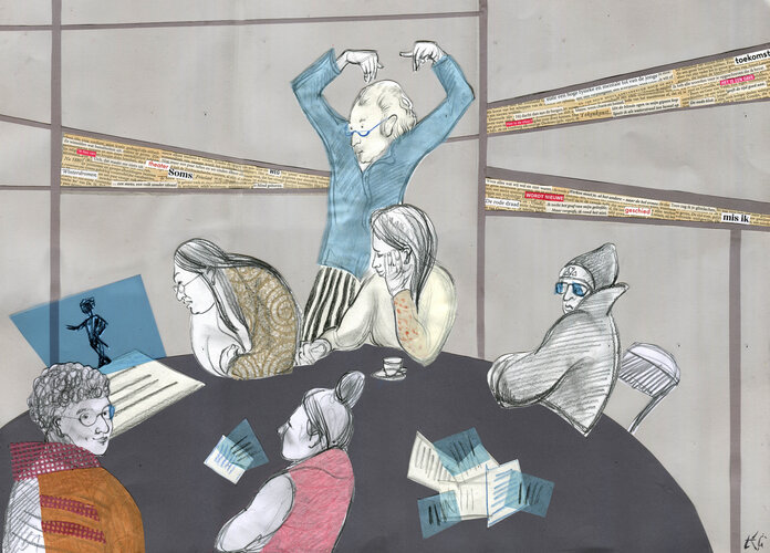 Wij, poëzieliefhebbers, zaten rond de tafel — met datzelfde gevoel dat je krijgt net voordat de voorstelling begint.