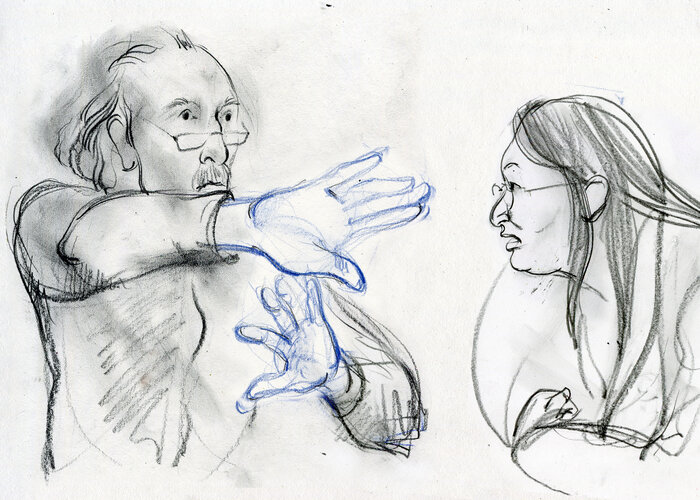 De blaadjes trilden op tafel. Laku, mijn buurman uit India, sloeg zijn kraag op — hij kreeg het koud. De Chinese vrouw volgde elke beweging van André,