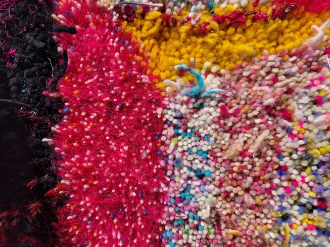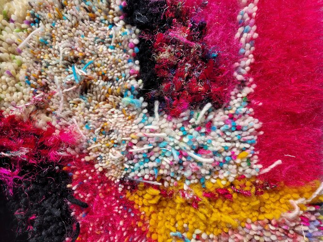 Dyptiek : Make Art Not Perfection. 2025. Tufting. 2 panelen 90 x 60cm.