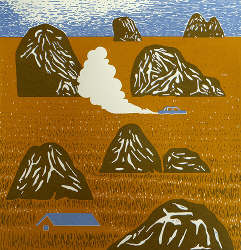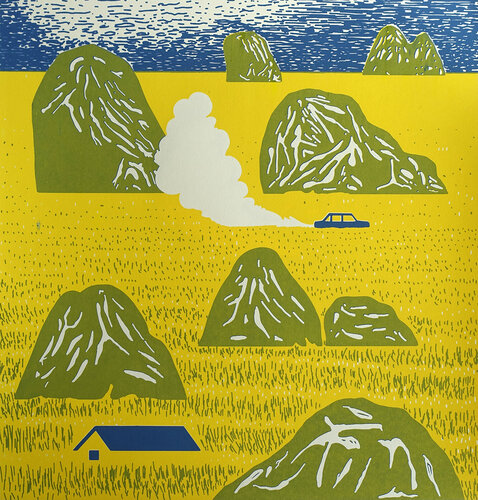 De prent flirt met de conventies van een roadmovie, waarin het landschap centraal staat.