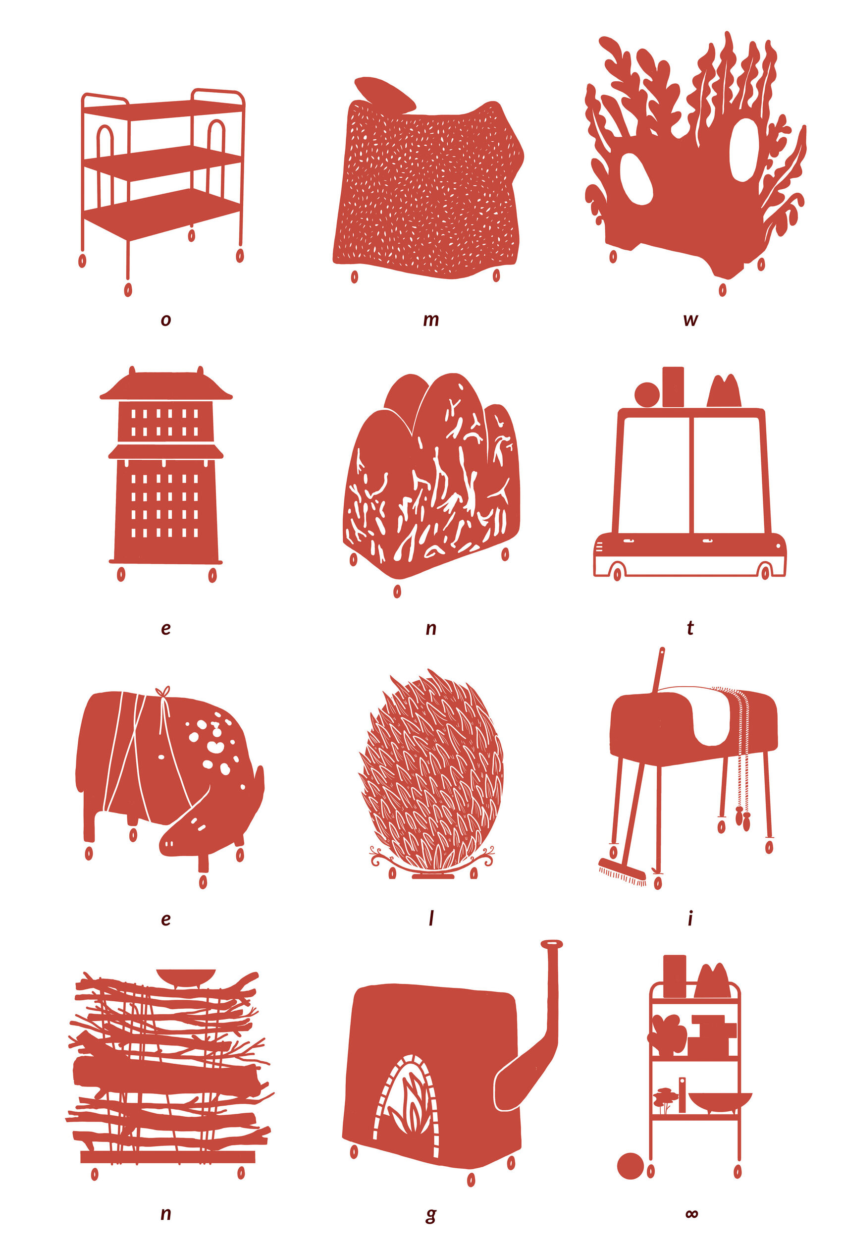 Twaalf beelden illustreren de gedaanteverwisseling van een object dat in verschillende posities de kamer rond reist. Soms herkenbaar, maar even vaak bevreemdend.