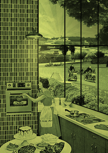De bijhorende illustratie verbeeldt een korte keten met: lokale landbouw in de velden, - een voedsel hub aan de horizon, - de weg die producten afleggen via duurzaam transport, - allerlei kleinschalige verwerkende bedrijven onderweg en - de bereiding in de keuken als voorlopige eindbestemming.