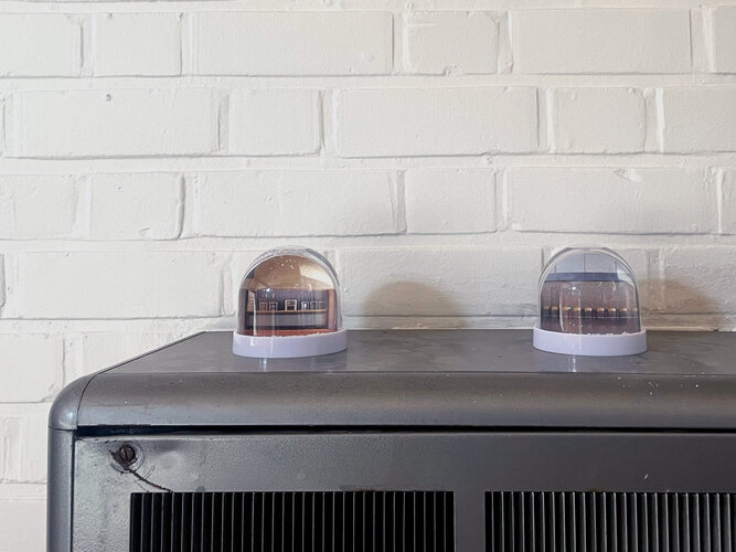 The videos combine fake 360° fabricated surveillance footage with still images taken in various community centers between events, empty rooms waiting for something to happen.