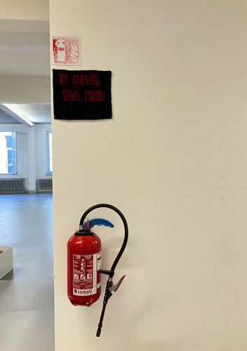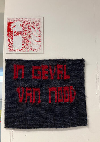 This weaving is a reference to a poster in the lift of the student home. By using the words where they are useless, the meaning becomes absurd.