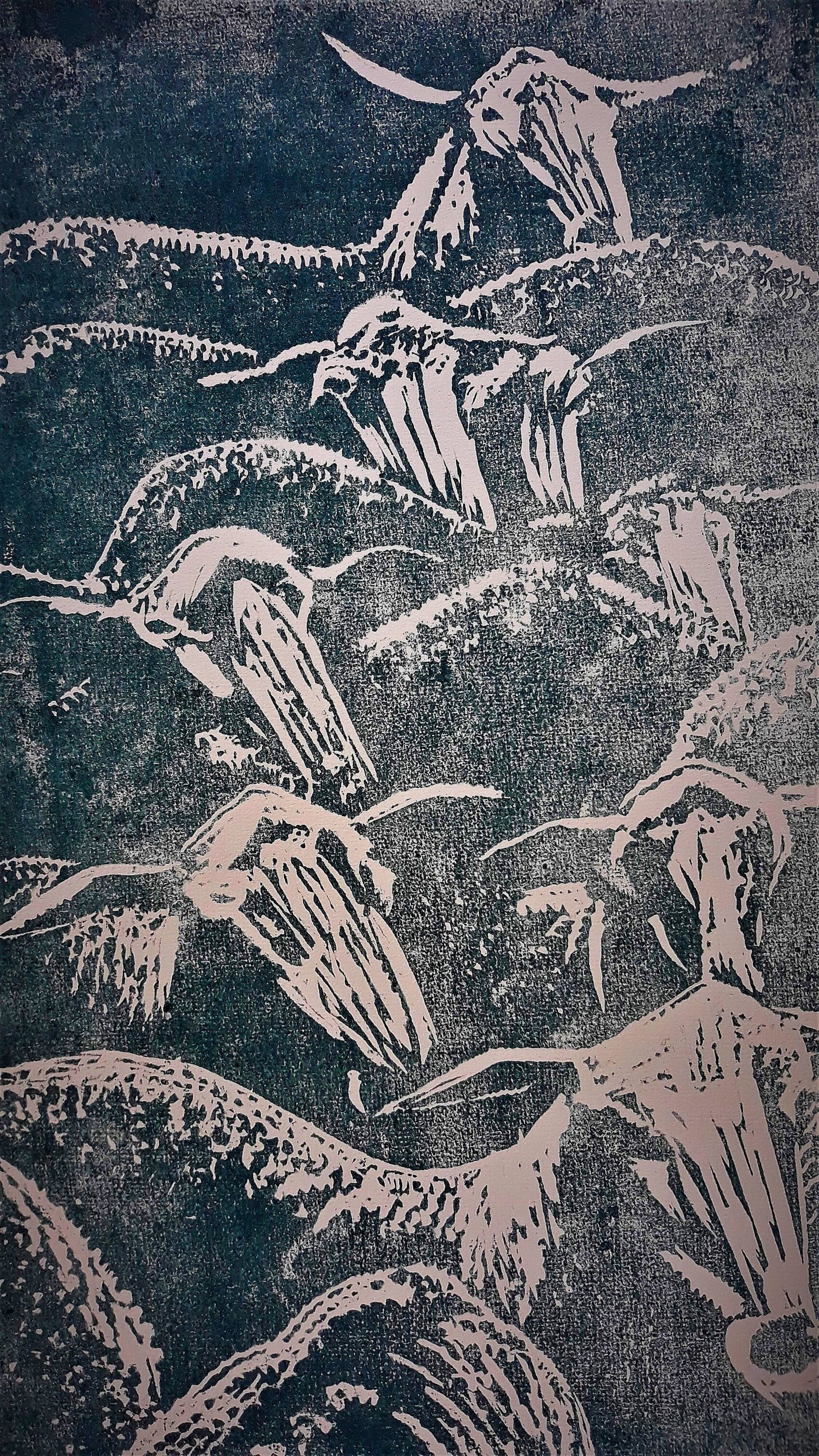 Het thema van schapen opeengepakt in een donkere stal pikte ik op in de Veluwe, waar heideschapen het natuurlandschap in stand houden. Ik koppel hier graag de symboliek van verbondenheid aan omdat schapen zich allen in een zelfde levensconditie bevinden en samen sterker zijn tegen de gevaren, waaronder recent de reële bedreiging door wolven.