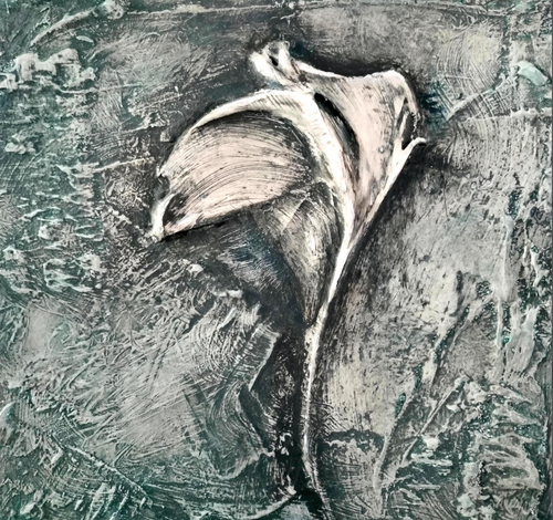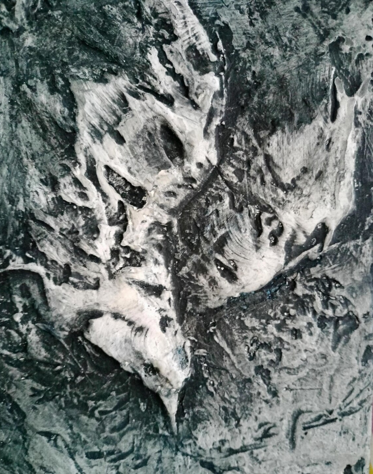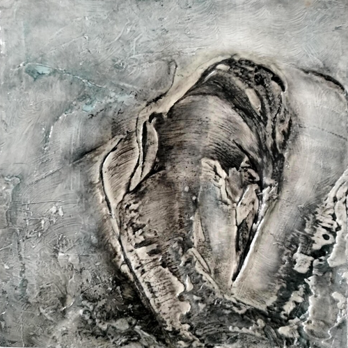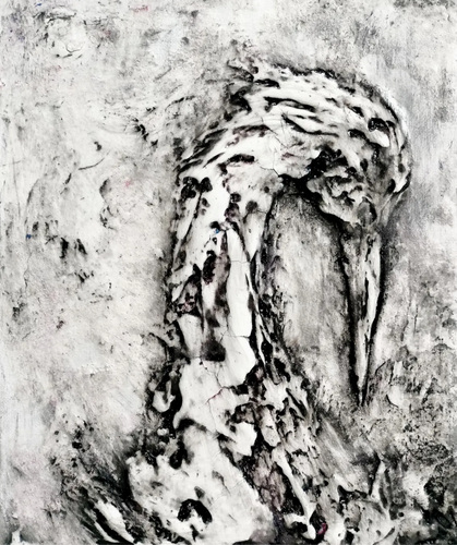 Made with black pigment and tactile layers, this piece invites not only the eye but also the hand to explore its form. The bird emerges from the texture like a memory surfacing — present, even when unseen.