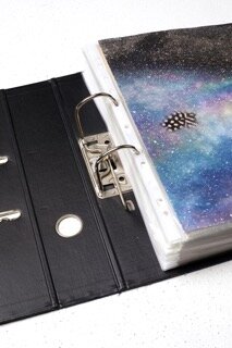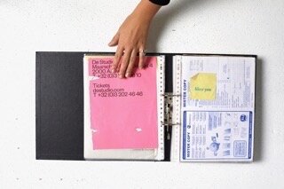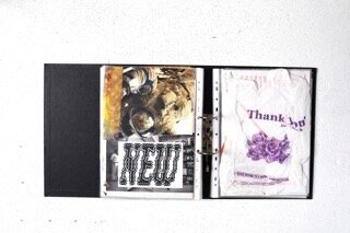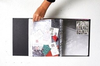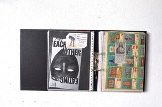 In 2017 begon ik allerlei visueel interessante dingen bij te houden die ik in de wereld vond, zoals flyers, visitekaartjes, kranten, bonnetjes,... en ik verzamelde ze in een eenvoudige zwarte map. Als ik nieuwe stukken toevoegde, herschikte ik andere stukken en zo werd het een dagboekcollage van herinneringen en verzamelobjecten. De map bevat 44 plastic mapjes met bewust gerangschikte composities.