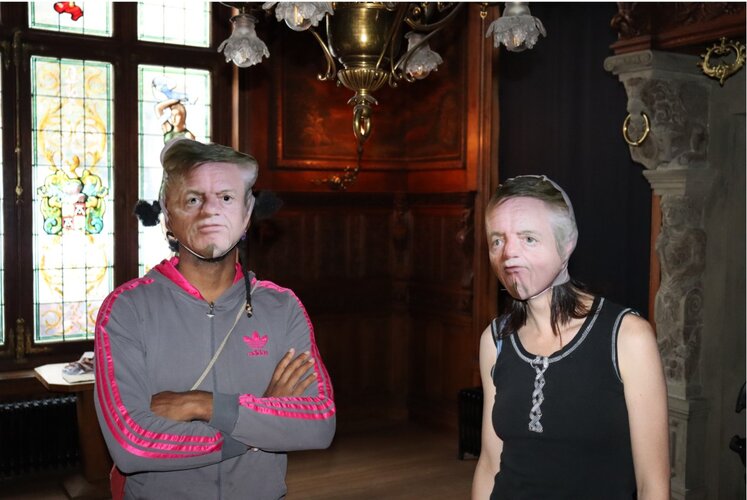 For this work I put on the suit of a family member and recorded a video of a gastroscopic camera going into my mouth and making its way into my stomach in the office of my doctor. With the help of a friend (Ruben Pattyn) we were able to deepfake the face of the Flemish minister of culture onto mine. In this way, we see the inside of Jan Jambon, a powerful politician and flemish minister of culture that in some ways gives the impression of being a shell of a human. This work was shown in the exuberant dining room of Maison des arts in Brussels. The same exuberance we see returning in our own digestive tract aswell as in the five governments of Belgium and its politics.