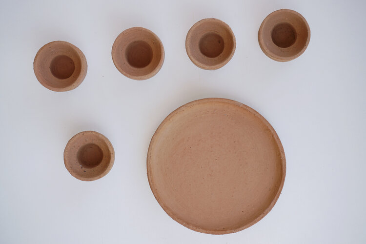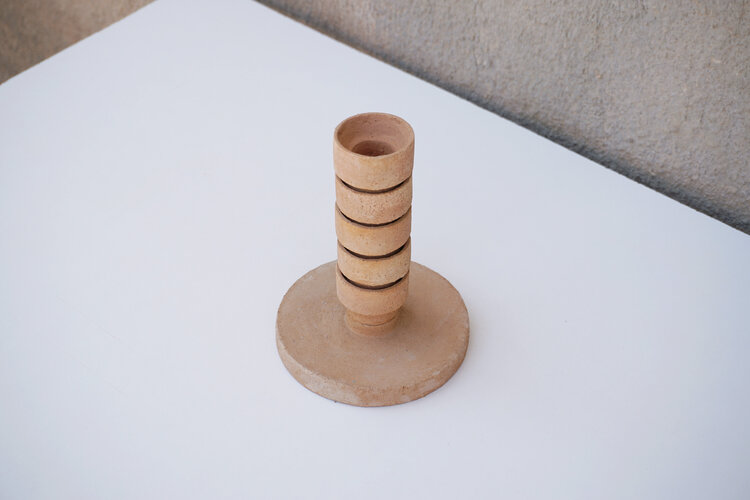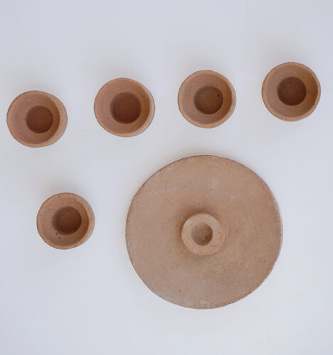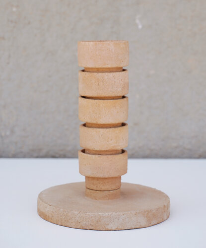 Deel van een reeks van gesculpteerde gebruiksvoorwerpen, gemaakt in Marokko en ontstaan uit het idee om mezelf te omringen met 'sculptures à vivre', sculpturen om mee te leven.  Het is een reeks die een kantelpunt en een verlangen naar een ander soort leven belichaamt.