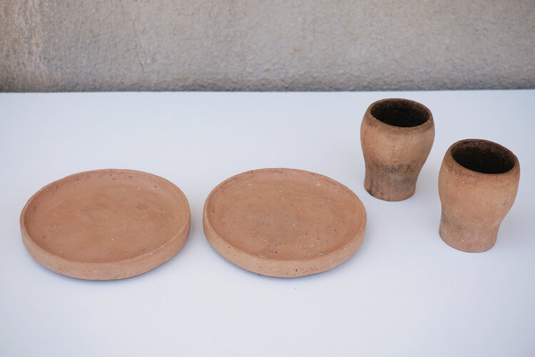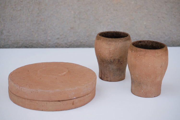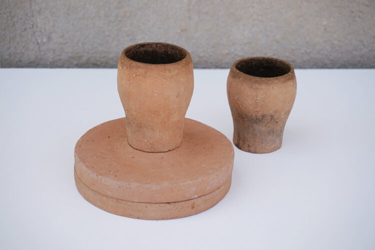 Deel van een reeks van gesculpteerde gebruiksvoorwerpen, gemaakt in Marokko en ontstaan uit het idee om mezelf te omringen met 'sculptures à vivre', sculpturen om mee te leven. Het is een reeks die een kantelpunt en een verlangen naar een ander soort leven belichaamt.