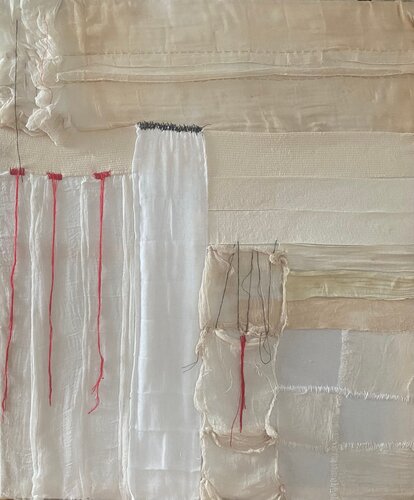Strain no 1 and 2 reflect on the complexity of systemic medical and obstetric violence against women using abstract arrangements of medical textiles. It questions body autonomy and exposes the absurdity of the medical system.