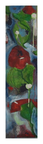 Misschien schilderde ik een bos dat nooit bestond, of een boom die zong in de wind, in ieder geval de ceder krijgt een nieuw leven — niet als schaduw in een tuin, maar als verhaal aan de muur.