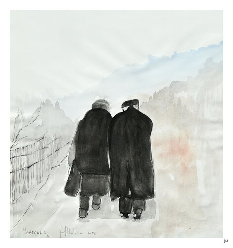 Mijn Woordegaard. (titel: Walking 2. Werk uit 2015.) Ik stap in mijn schilderij. De Boom die Bleef Bestaan.