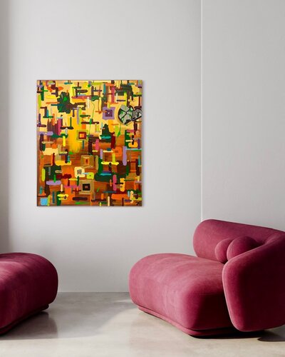 Reflets de l'âme invites the viewer into a space of self-reflection. The vivid layers and interwoven blocks suggest the boxes in which we are sometimes, unfairly, placed—rigid frames that attempt to define what cannot be contained. Yet, within these boundaries, each hue and variation reveals the colorful qualities that make every individual unique.