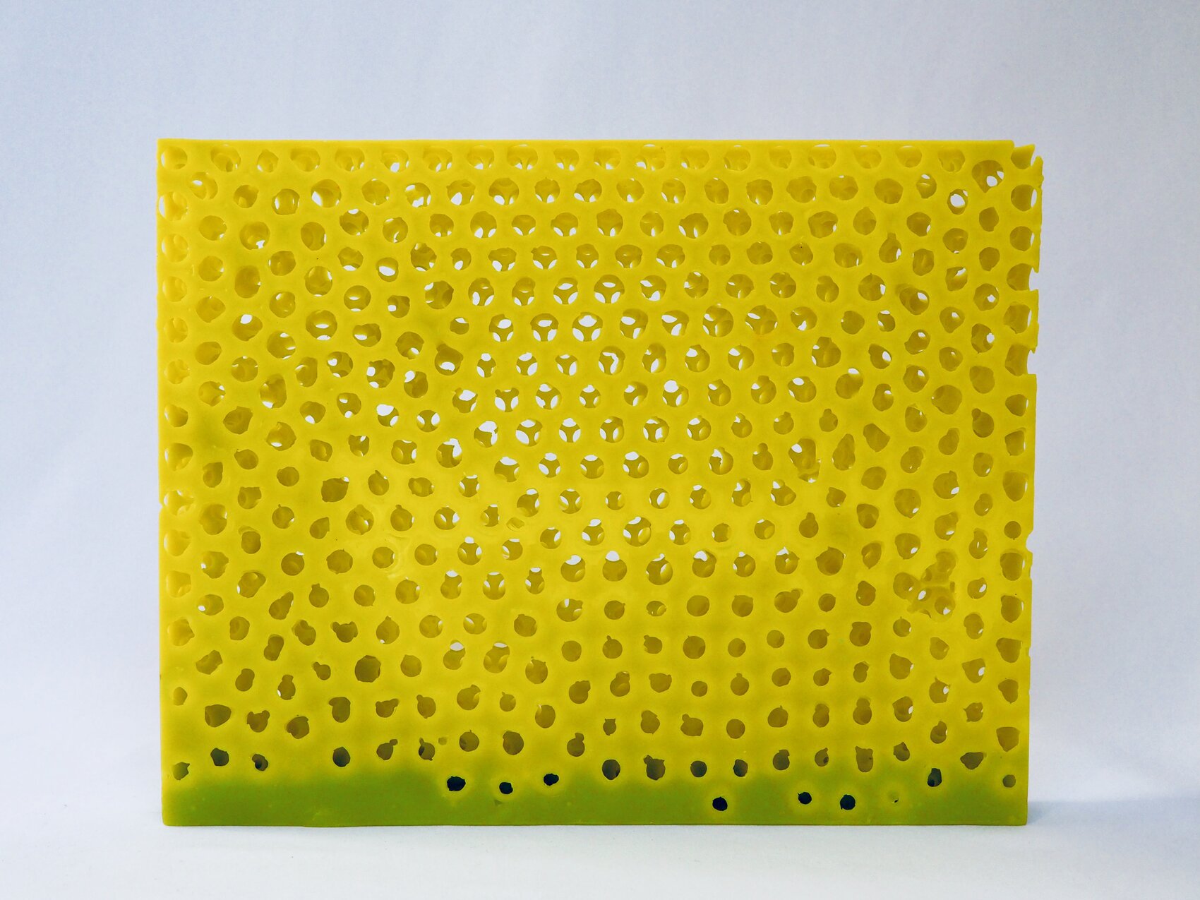 The interplay between light and the porous sculptures offer subtle colour differences and a multitude of perspectives that captivate its viewers.