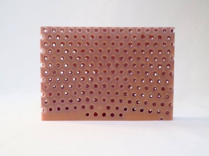 The interplay between light and the porous sculptures offer subtle colour differences and a multitude of perspectives that captivate its viewers.