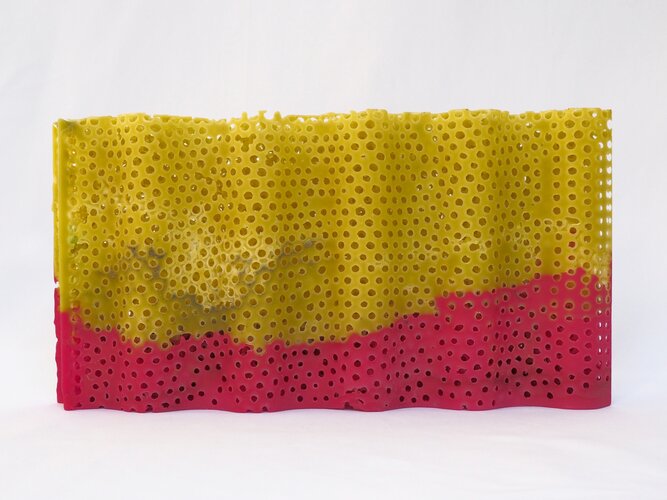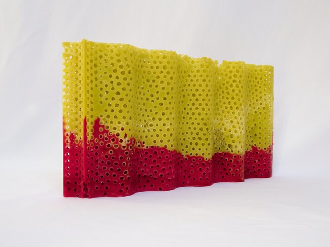 The interplay between light and the porous sculptures offer subtle colour differences and a multitude of perspectives that captivate its viewers.