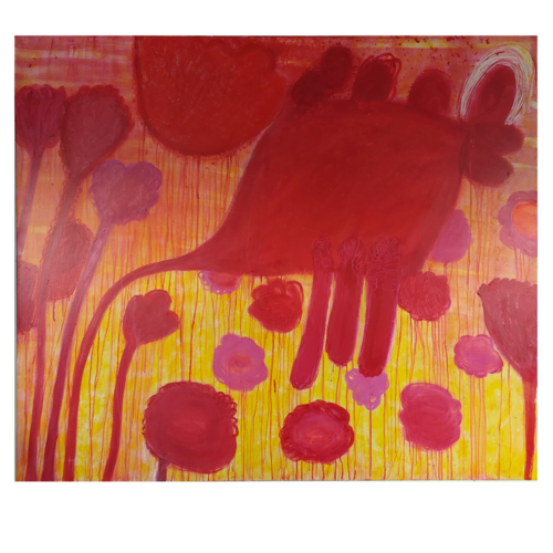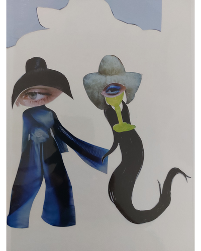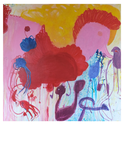 acryl, stift, pastel, oliepastel, papier op papier op canvas