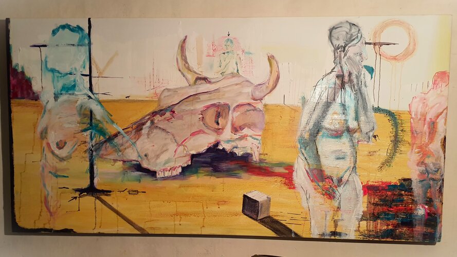Het kunstwerk toont een sterke symboliek en roept verschillende emoties op. Het skelet van de koe staat voor vergankelijkheid en de cyclische aard van het leven. De dode boom in de woestijn vertegenwoordigt eenzaamheid en de moeilijkheden van het bestaan. De naaktmodellen geven menselijke kwetsbaarheid weer en symboliseren ook schoonheid en kracht. De symbolen van elektriciteit benadrukken technologische vooruitgang en de rol van energie in onze samenleving. Over het geheel creƫert dit kunstwerk een complexe en intrigerende boodschap over de menselijke conditie en onze relatie met de natuur en technologie.