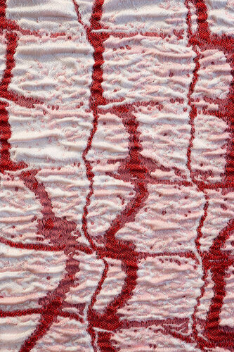 In this project, I explore how a textile image can preserve and extend the life of a cherished textile object. The object, a net, is first captured through photography and then translated into a woven image. I made the weave wrinkled, aiming to evoke a sense of movement, change and the passage of time. As the image of the net crinkles and shifts, the net appears less like a representation and more like a presence—tentative, remembered, momentarily reappearing in the room.