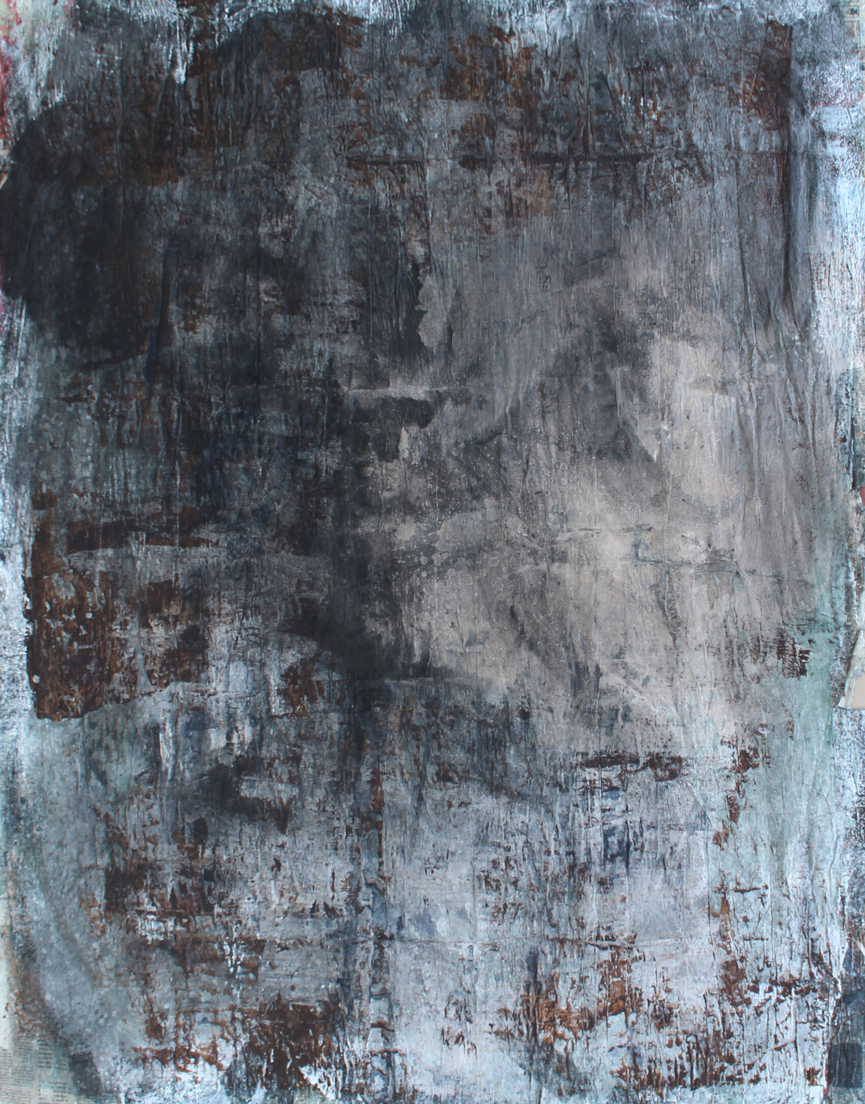 Inkt, bister, acrylverf en papier op doek.