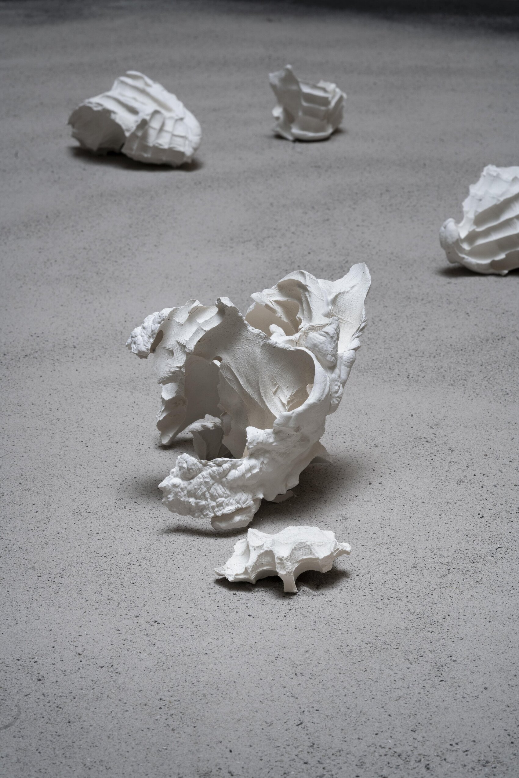 The technique of plaster casting has always been part of my sculptural practice. It’s a material whose simplicity and aesthetic I deeply appreciate. One day, I poured plaster into my hands and waited. What emerged was a kind of shell — a three-dimensional overlay of the gesture of my hands in offering, a negative of absence. I then repeated the experiment around me, asking people to shape a gesture together. They don’t always know each other. They wait together for the plaster to set, and I keep the imprint of their encounter to create a landscape of relations.