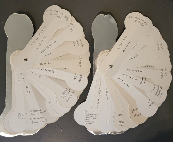 VAN PAPIER EEN PIEMEL MET BALLEN, MET DAAROP DE NAAM VAN DE MAN EN DE FUNCTIE WAARIN HIJ HET GRENSOVERSCHRIJDEND GEDRAG VERTOOND HAD, ALS ER WEER IEMAND VEROORDEELD WAS.
