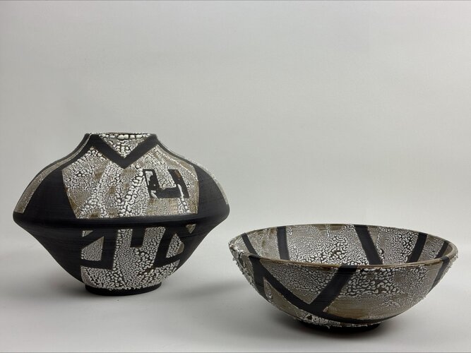De Vorm van Voelen. Draaien van identiteit. Ik ben eveneens een grote fan van grootdraaien. Twee schalen werden op elkaar gezet zodat ze een figuur vormen. Nadien heb ik ze voorzien van kleding, maar beide kanten kan je ook weer draaien naargelang je gevoel.