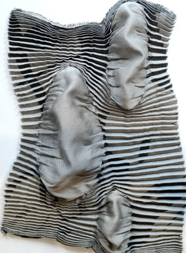 Using the shibori technique, I’ve become shapes that hold the physical memory of actions that are long gone and create shapes that might or might not have been there.