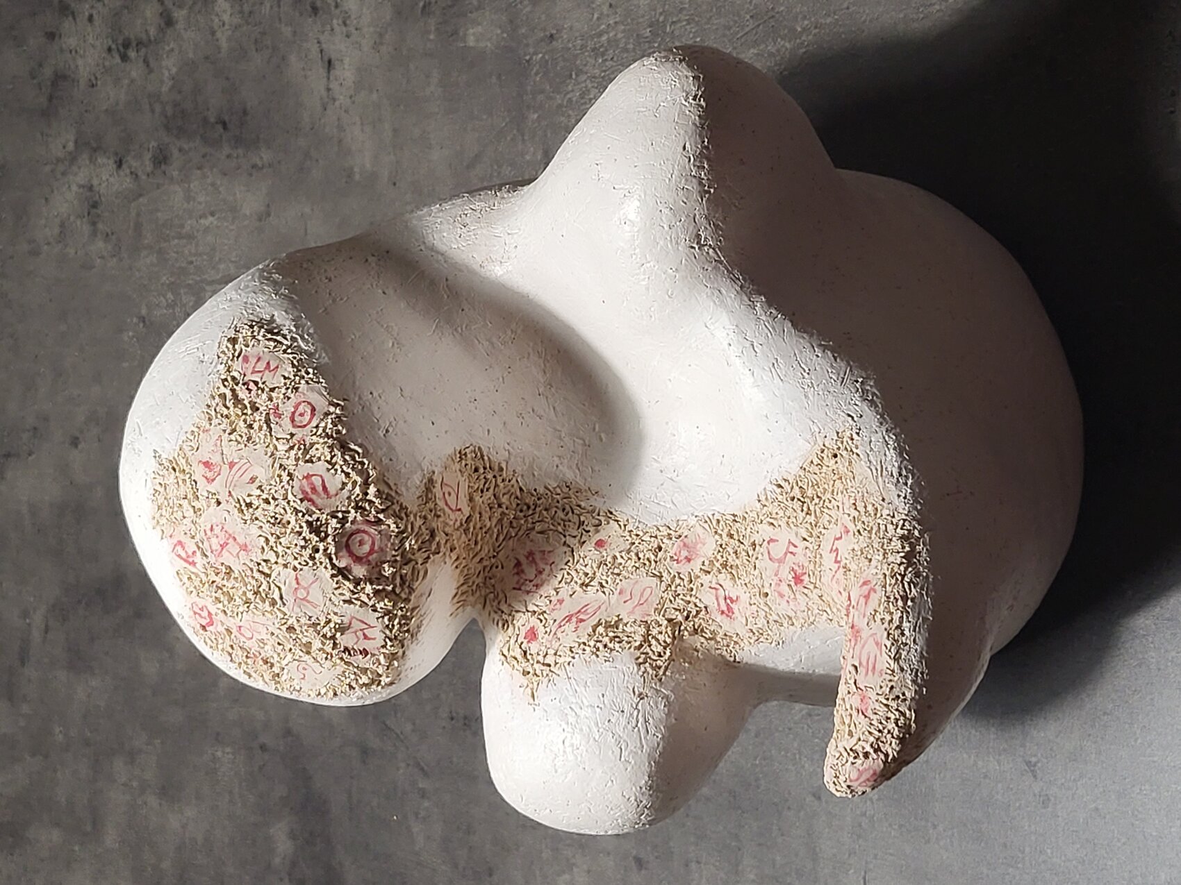De aangebrachte verzonnen symbolen staan voor mijn eigen verhaal.