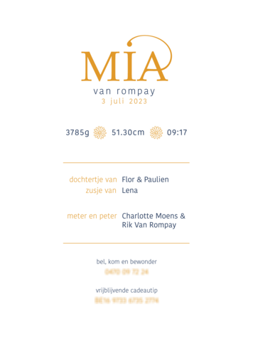 Geboortekaartje voor Mia