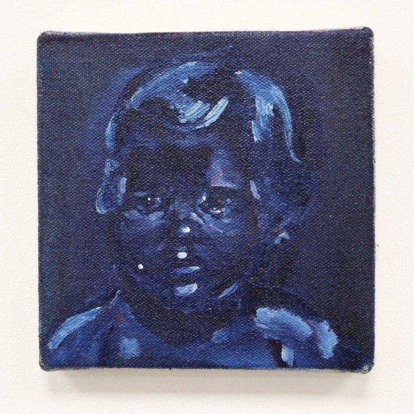 Little boy Blue, 2025, oil on rabbit skin primed canvas on board, 10 x 10cm