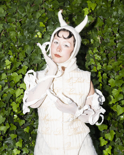 The garments, designed in collaboration with Alexis Gerlach and Aidan Abnet, weave together layers of identity. A tail, claws, and horns extend from the body, evoking a creature in constant transformation. These animalistic elements become emblems of code switching, mutation, and survival within queer existence, an embodiment of how society projects monstrosity onto difference. Yet within the performance, these symbols are reclaimed as sites of strength and defiance.