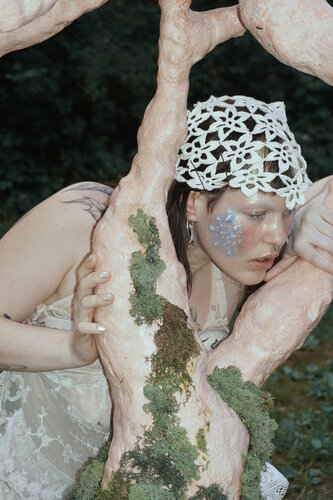 The installation reflects on the tensions and frictions between nature, culture, and technology, exploring possibilities for coexistence. It invites the audience to enter a symbiotic environment and to listen—to the soil, to the body, to the subtle pulse of shared existence. Within this landscape of transformation, new perspectives emerge, offering insight into how all species might coexist through awareness and acknowledgment of interdependence.