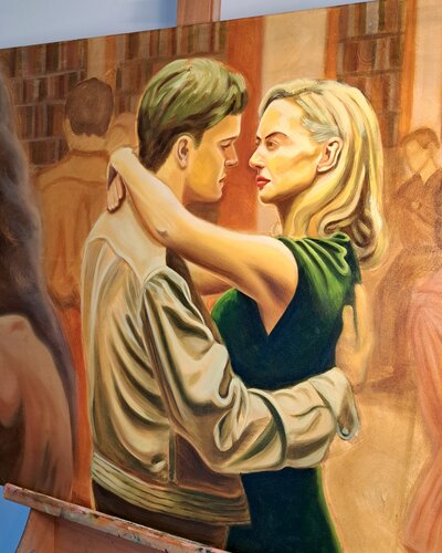 Romantic retro love and retro colours in my new work "The Dance". This piece is inspired on the film Revolutionary Road, a love story taking place in the 40s-60s. Wonderful and heartshattering at the same time 🧡
